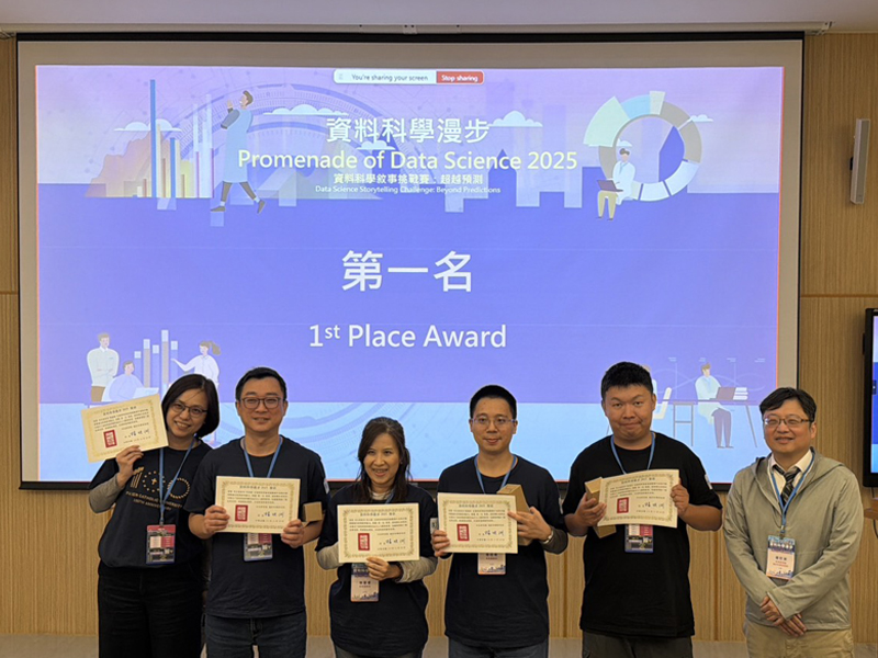 【統計資訊學系應用統計碩士在職專班供稿】輔仁大學統計資訊學系應用統計碩士在職專班再創佳績!今年由中央研究院主辦的「資料科學漫步競賽」吸引全台各大專院校共 73 支隊伍參賽,最終僅有 38 隊成功晉級決賽。本校應用統計碩士在職專班共有兩組學生從激烈競爭中脫穎而出,不僅全數入圍決賽,更雙雙榮獲海報獎,其中一組更勇奪全場第一名,力壓台大、政大、清大等多所頂尖學校隊伍,展現強勁實力與亮眼表現。